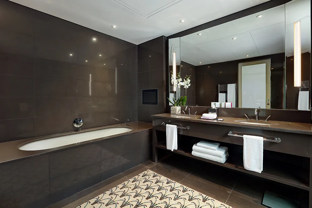 Bathed in natural light, our Corner Suites boast floor-to-ceiling corner windows with some of the city’s best views. Designed for both relaxation and work, they feature a separate living room and dining area, and can connect to adjoining rooms or suites.