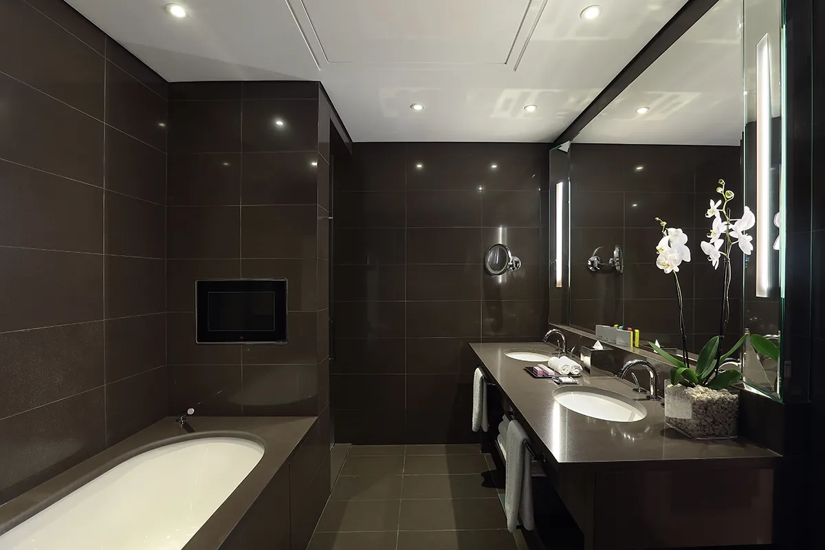 Bathed in natural light, our Corner Suites boast floor-to-ceiling corner windows with some of the city’s best views. Designed for both relaxation and work, they feature a separate living room and dining area, and can connect to adjoining rooms or suites.